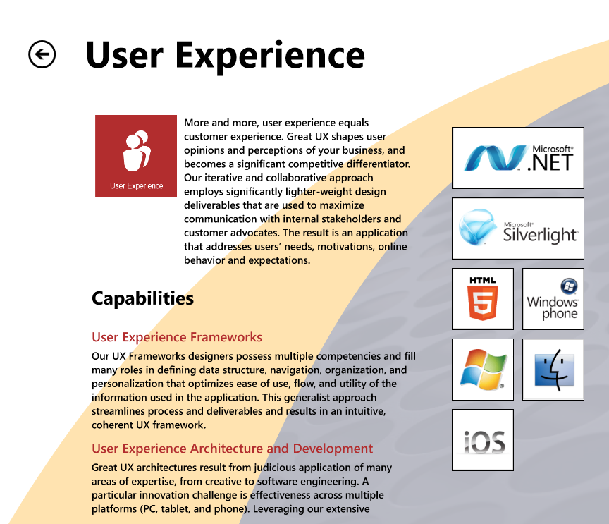 Over the years, Microsoft has paid little attention to User Experience (UX). In contrast Apple has put most of their effort into creating the best UX possible. In order to keep up Microsoft has recently started to develop a common style that places UX in the forefront. It started with Zune software, then it made an appearance in Windows Phone 7, the XBOX dashboard was not far behind, and finally it is the premier UX for the new Windows 8. The style is Metro.