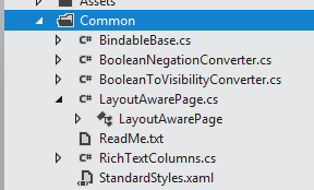 The Common directory contains classes and XAML styles that simplify application development.