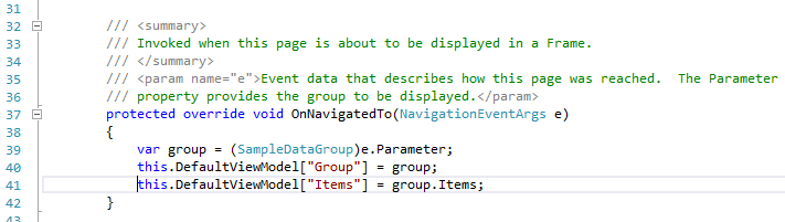 I like that this functionality has been centralized and removed from the code behind. I like to develop XAML applications using Mode-View-ViewModel (MVVM) pattern. Anything that helps limit the code in the code behind I am for. So how does MVVM play out in Windows 8.