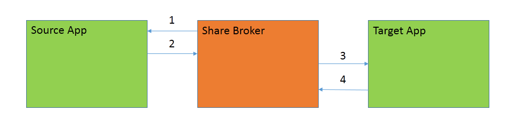 3. The Broker inspects the DataPackage’s  data format (see the MSDN site for acceptable formats) and displays a list of possible Target apps for the user to select. Target applications have to declare which types they can accept. The user selects a Target application and the Broker passes the DataPackage to the Target.