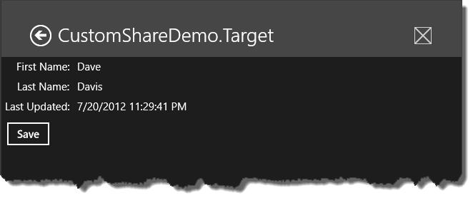 Now create some UI that is called when you Target is activated via the share charm.  Some things to keep in mind are: