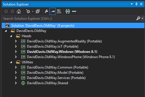 Under the system you can create one project, compile into one application, and have it run on all the devices. The APIs are pretty much the same. When they do differ for a device, Microsoft has a way for that code to still live in the same project (see my last post for a sample). There may be times when you want to separate out code. For instance code that can be reused in projects that are not part of the new platform, server code comes to mind. That should still be possible. I say should because we don’t know for sure. We will have to see what comes out at Build next week. Hopefully we will have more clarity on this.