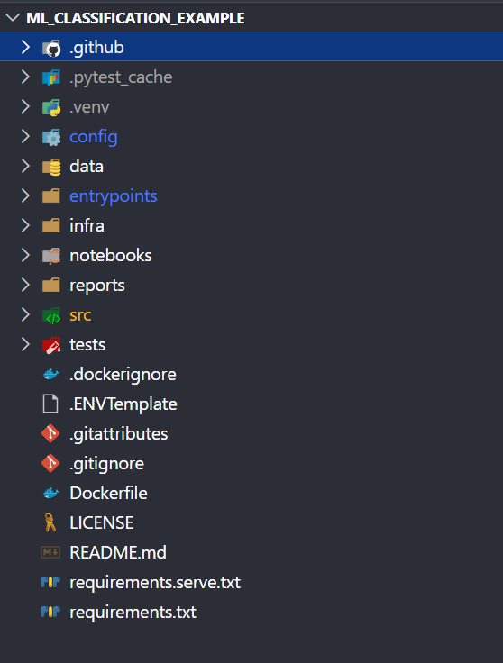 The repository at ml_classification_example, is a useful example of how a machine learning project can be organized as a system, not just a collection of experiments. Rather than focusing on model architecture or performance metrics, this post looks at how the structure of the repository itself enables MLOps practices such as reproducibility, automation, and long-term maintainability. It is based on a dataset that I worked with in my Master’s program.